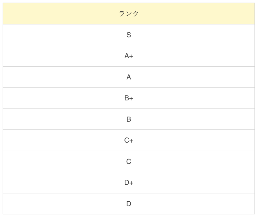 「D」から「S」までの9種類のランクに分かれており、その日の配信者ランキングによって毎日変動します。